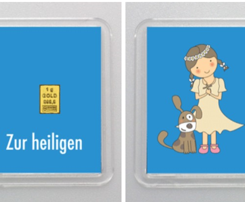 Valcambi 1 Gramm Goldbarren CombiBar – küssende Ottifanten in wunderschöner