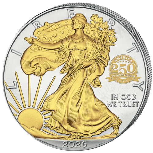 Silbermünze 1 oz American Silver Eagle 2026 Privy Mark 250th Anniversary Teilvergoldet