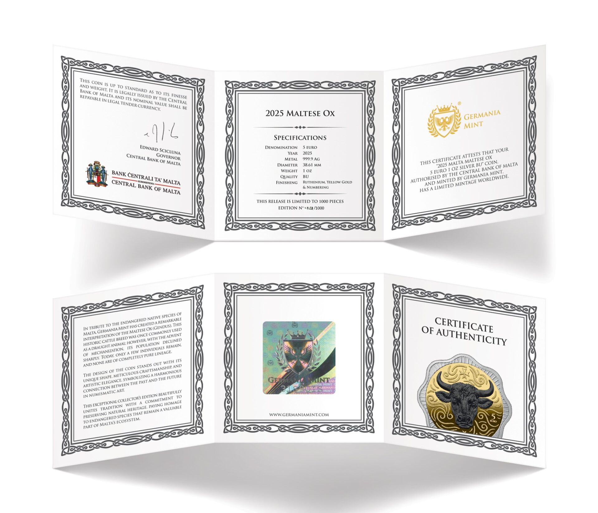 Germania Mint 1 oz Malta Maltese – Ox – Ochse – 5€ Ruthenium Gelbgold 2025