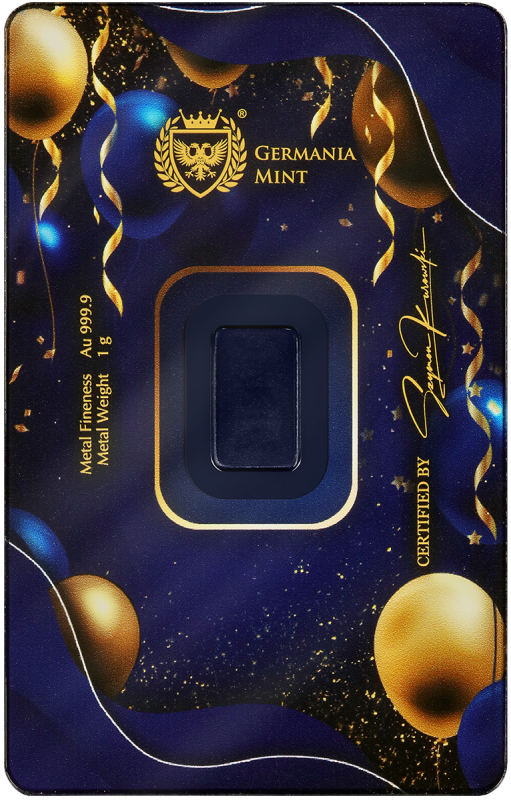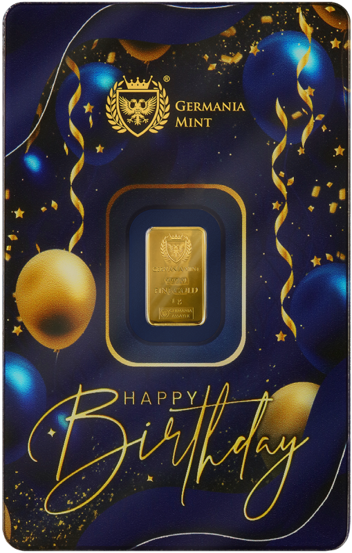 Goldbarren 1 Gramm Happy Birthday Geburtstag Geschenk Gold Blister Germania Mint