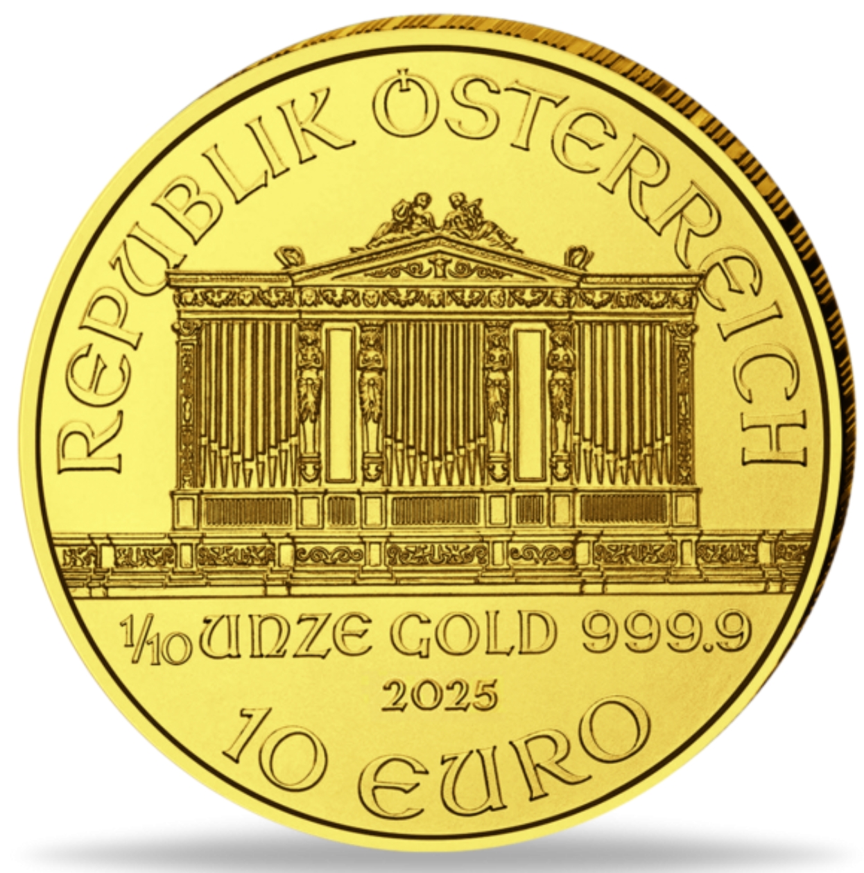 Goldmünze Wiener Philharmoniker 2025 1/10 oz 999.9 10 Euro