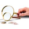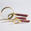 Handliche Stiellupe mit vergoldetem Metall-Rahmen und Rosenholzgriff.