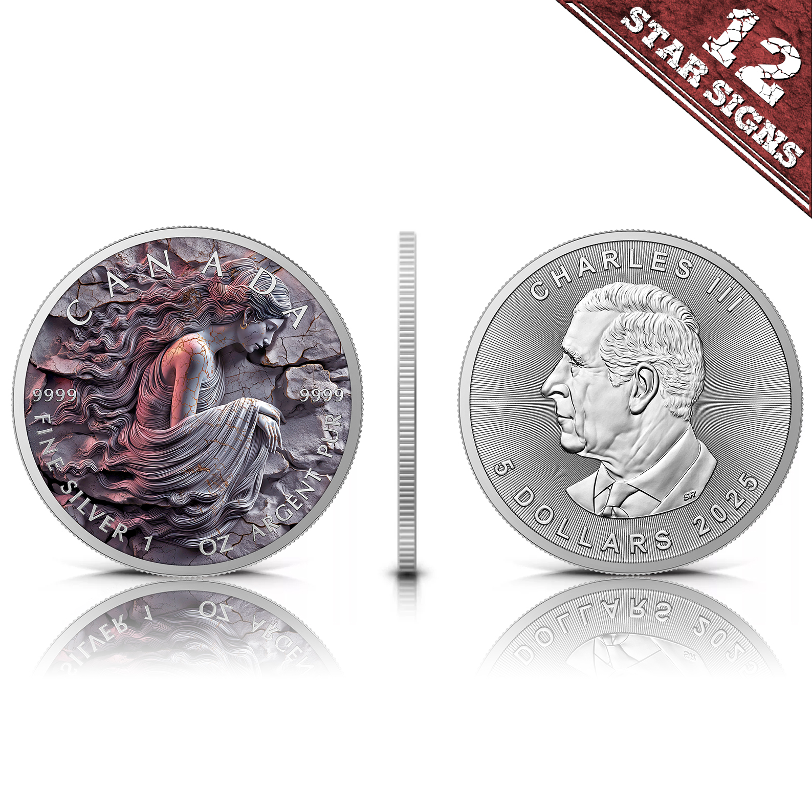 Silber Medaille Canada 1 oz – Stone Zodiac #Virgo 2025 Farbe Aufsteller CoA 999