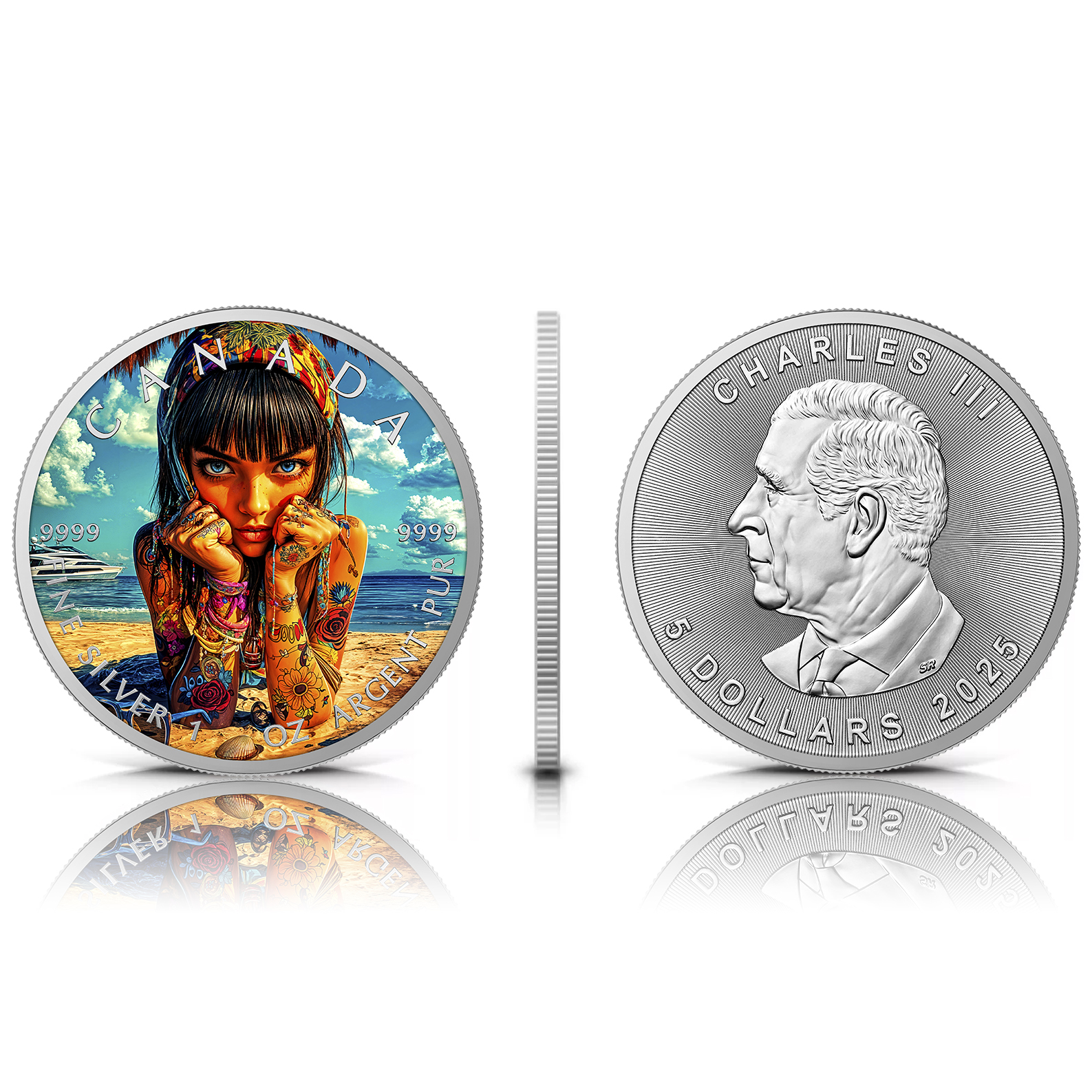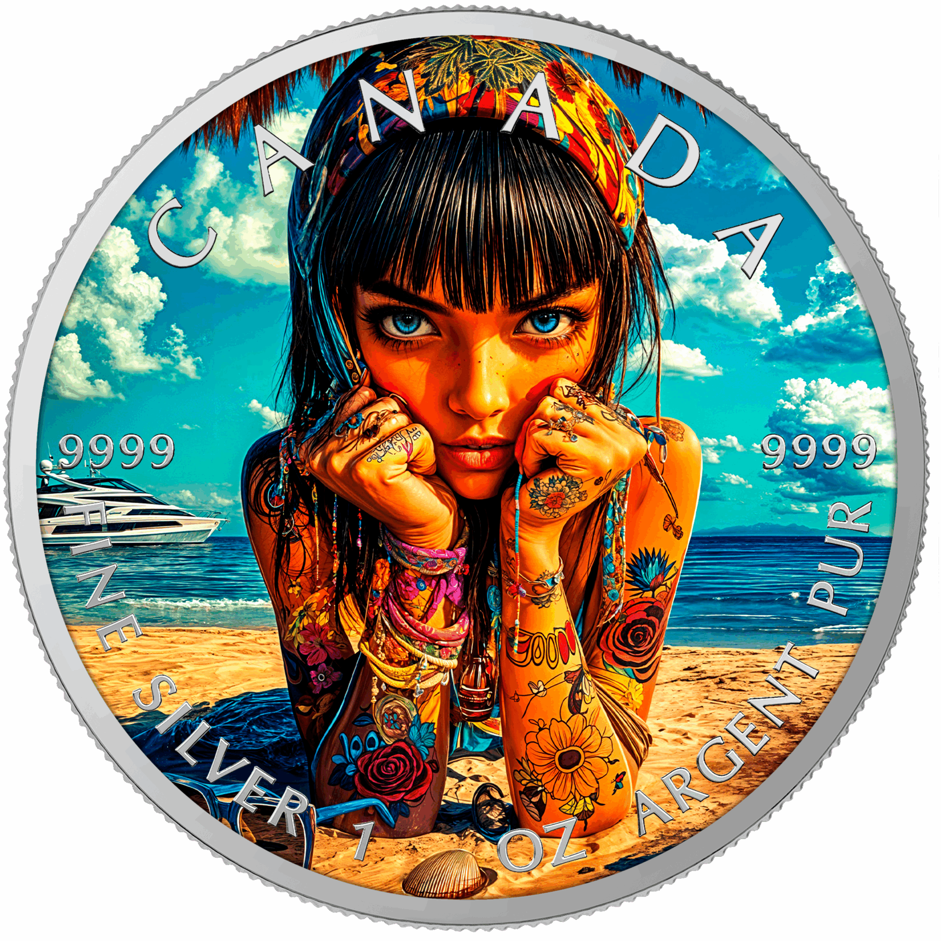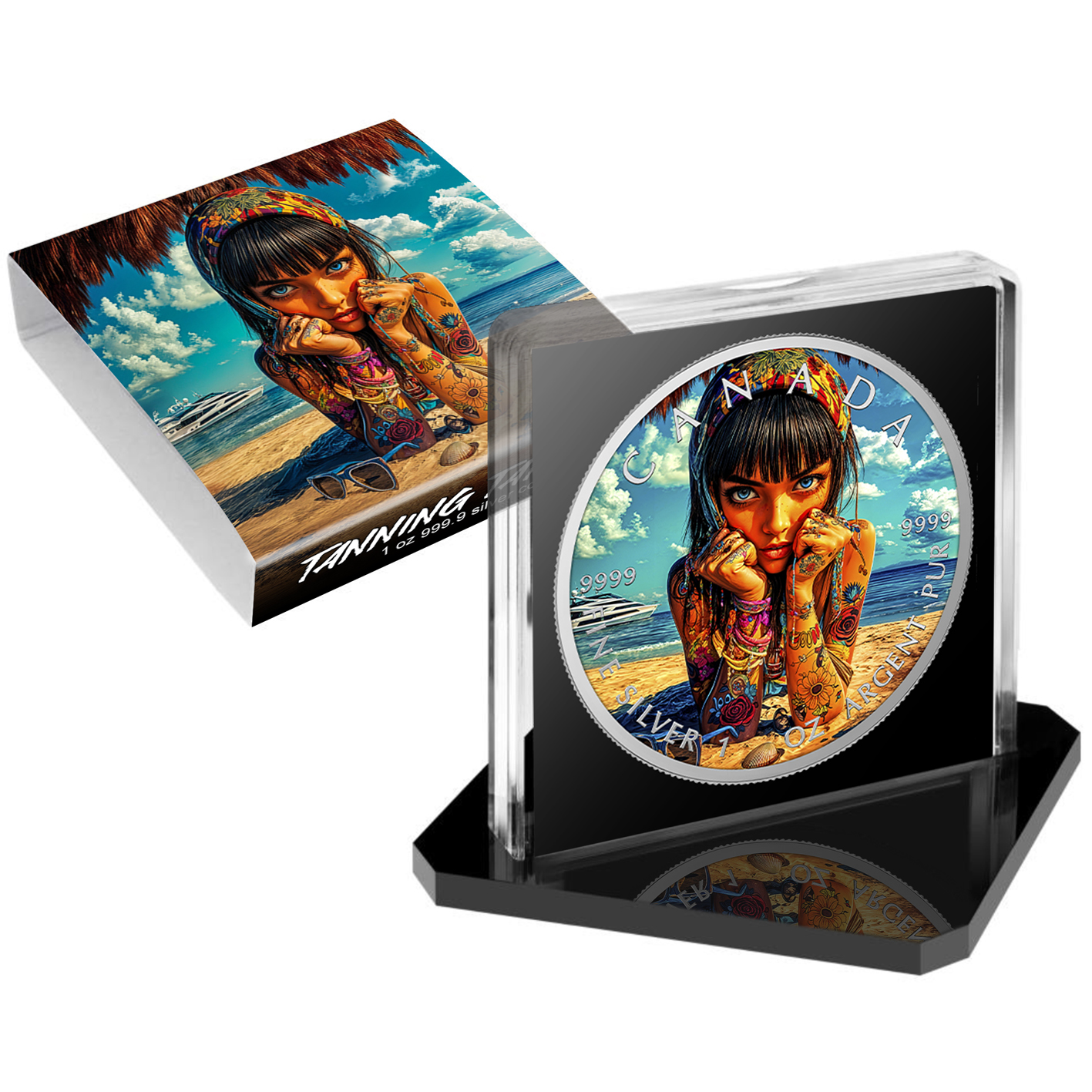 Silber Medaille Canada 1 oz – Tanning Tattoos – 2025 Farbe Aufsteller CoA 999.9