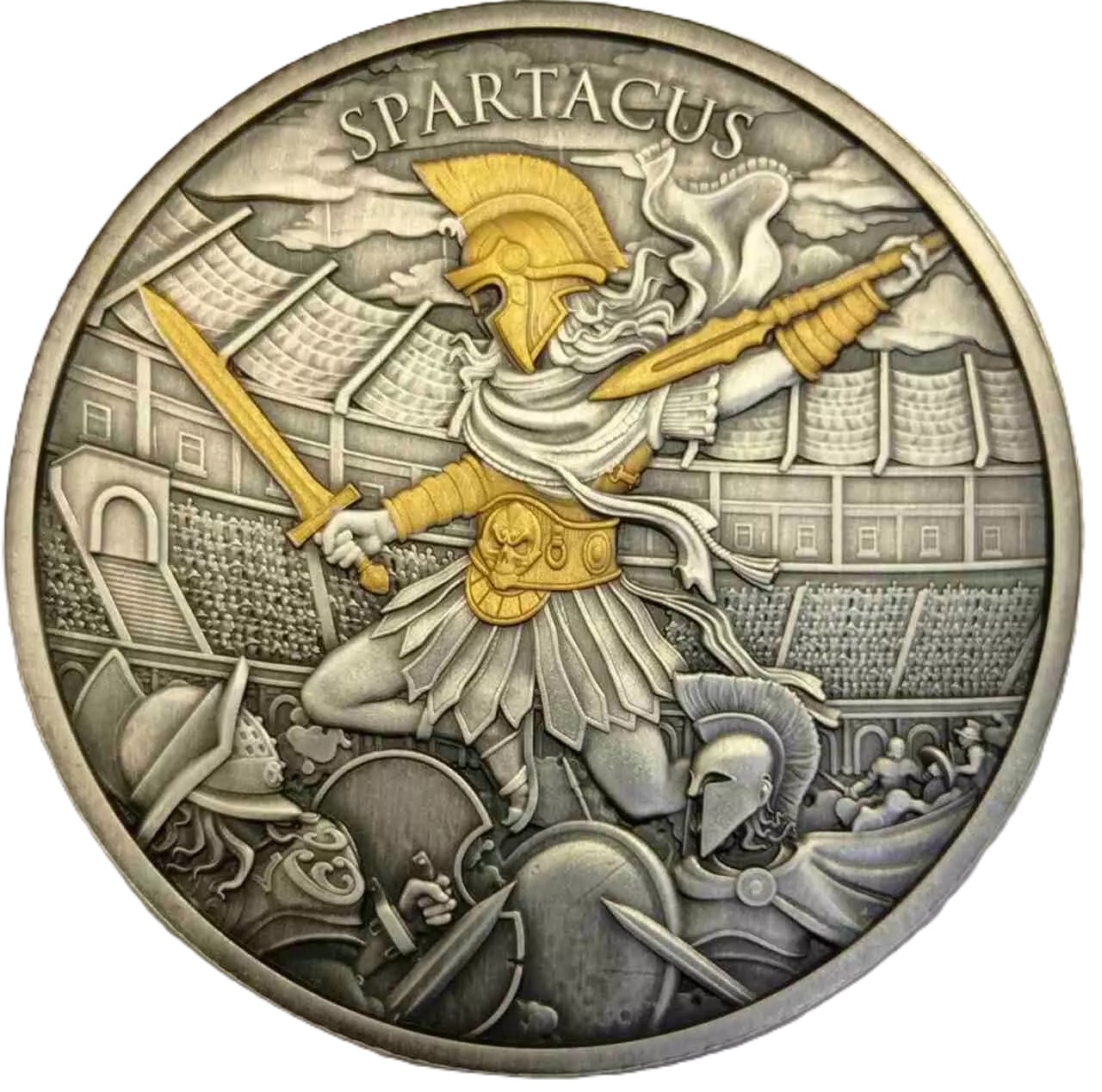 Silbermedaille 1 oz USA Legendary Warriors Spartacus #8 Antik Teilvergoldet