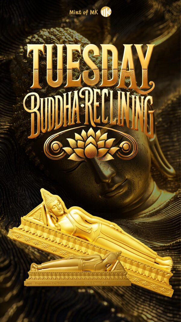 Silbermünze 1 oz 7 Days Buddha Tuesday Vergoldet Shapes High Relief Silber