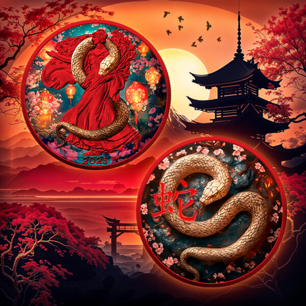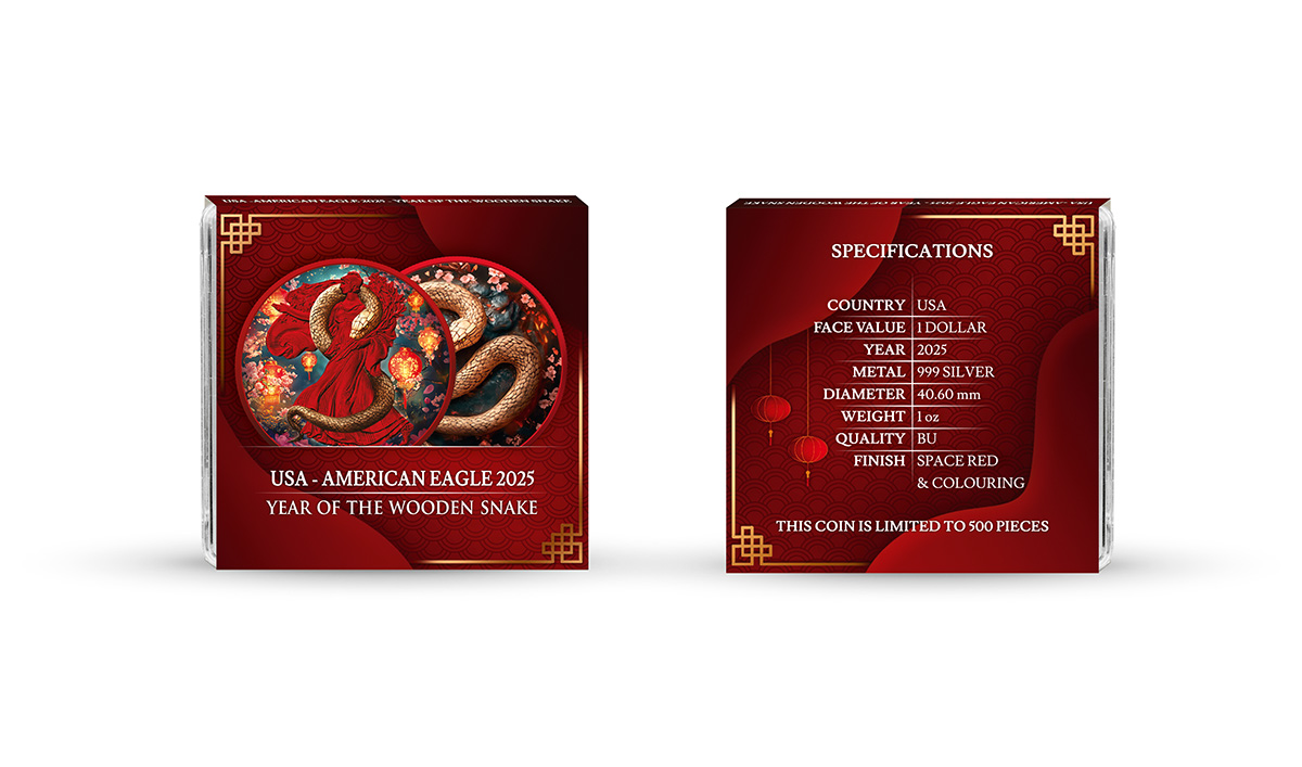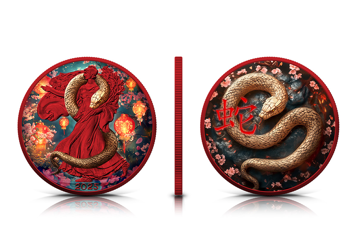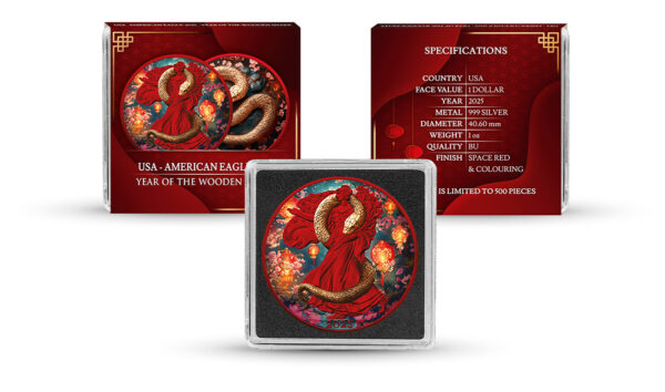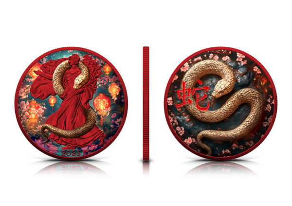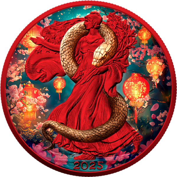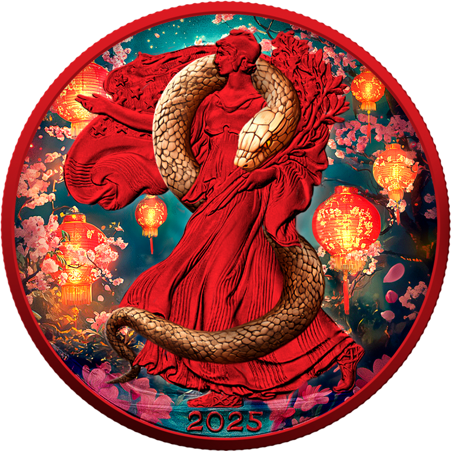 Silbermünze 1 oz American Eagle 2025 – Year of the Wooden Snake – Space Red COA