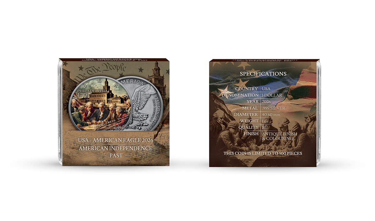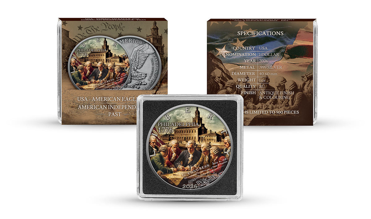 Silbermünze 1 oz American Eagle American Independence Past 2026 Antik Finish 999