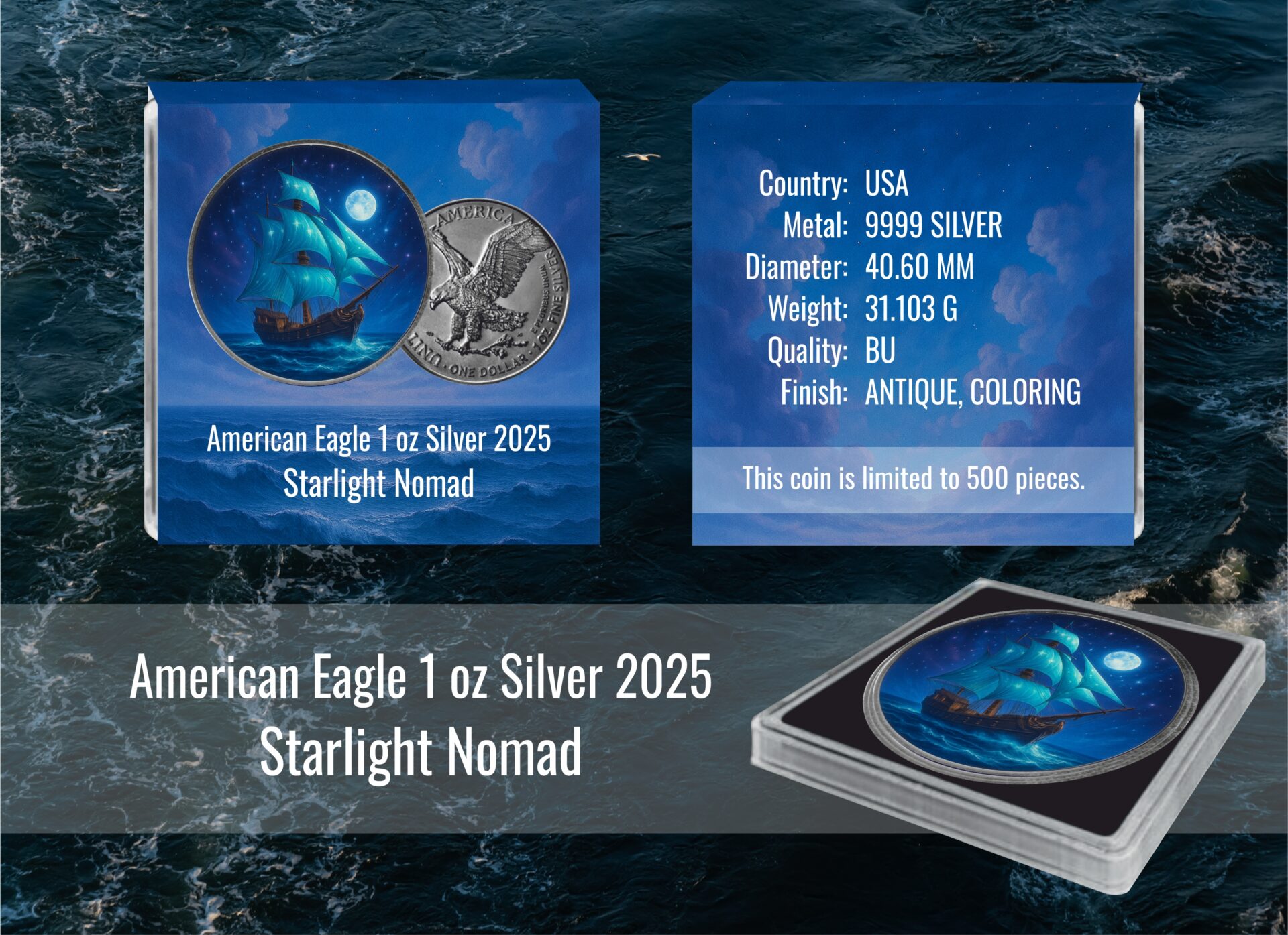 Silbermünze 1 oz American Eagle Masters of the Seas #4 Starlight Nomad Farbe