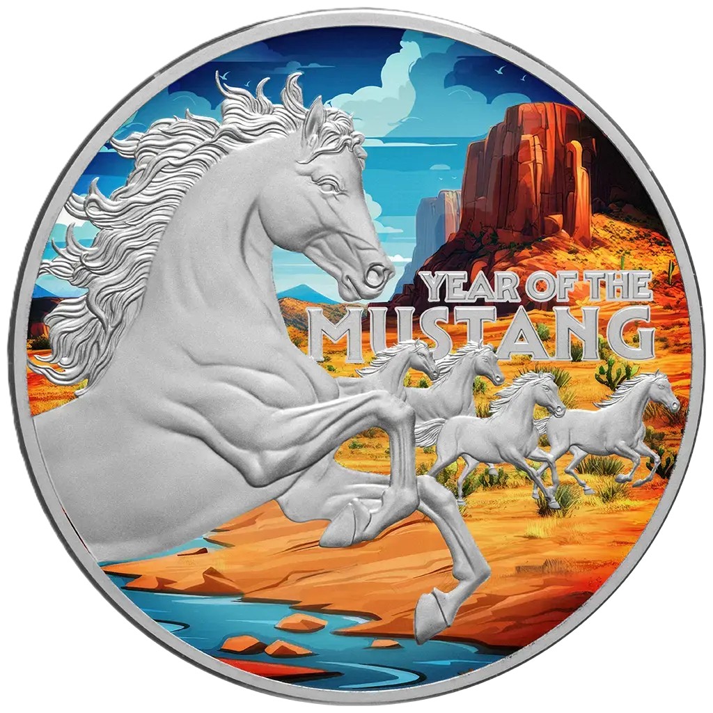 Silbermünze 1 oz American Lunar Year of the Mustang 2026 Farbe in Box 999 Silber