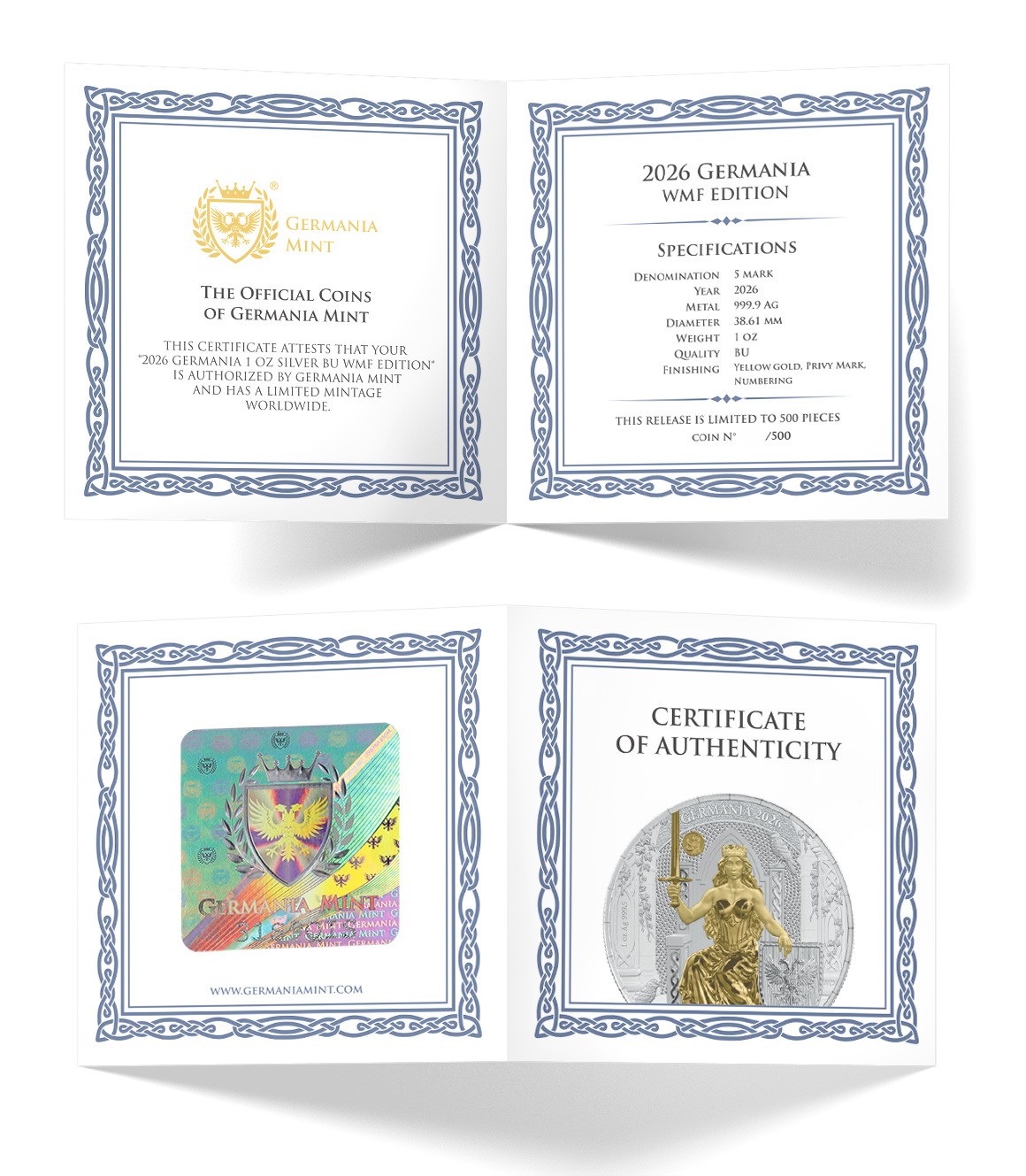Silbermünze 1 oz Germania Mint WMF Berlin Edition 2026 Vergoldet Silber 999