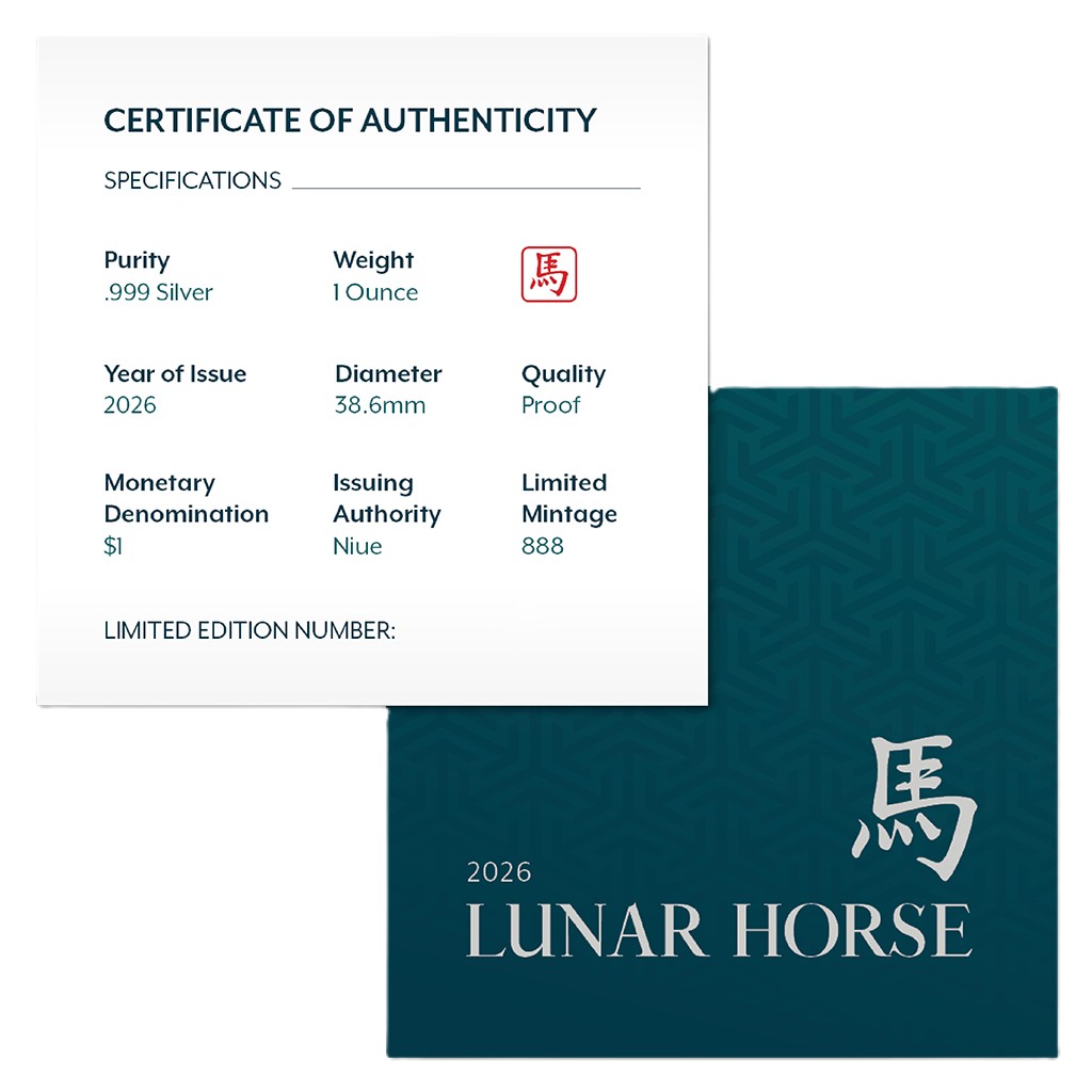 Silbermünze 1 oz Niue Lunar Jahr des Pferdes 2026 Polierte Platte PP Silber 999