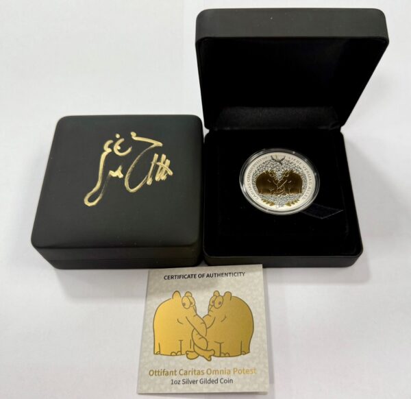 Silbermünze 1 oz Ottifanten Rüsselfanten 2025 gilded vergoldet „Caritas Omnia Potest“ mit Signatur von Otto Waalkes