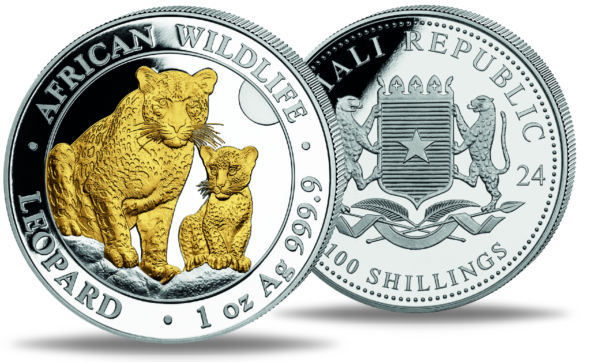 Silbermünze African Wildlife Leopard 2024 1 Oz Somalia 100 Shillings 999 Gilded