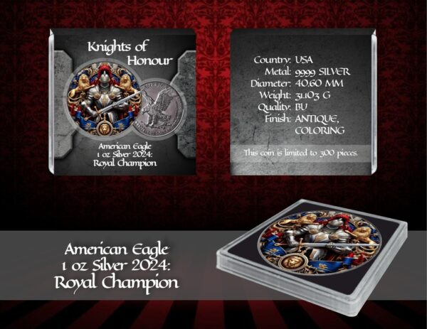 Silbermünze American Silver Eagle 2024 1 oz Knights of Honour – Royal Champion – Color – Antik