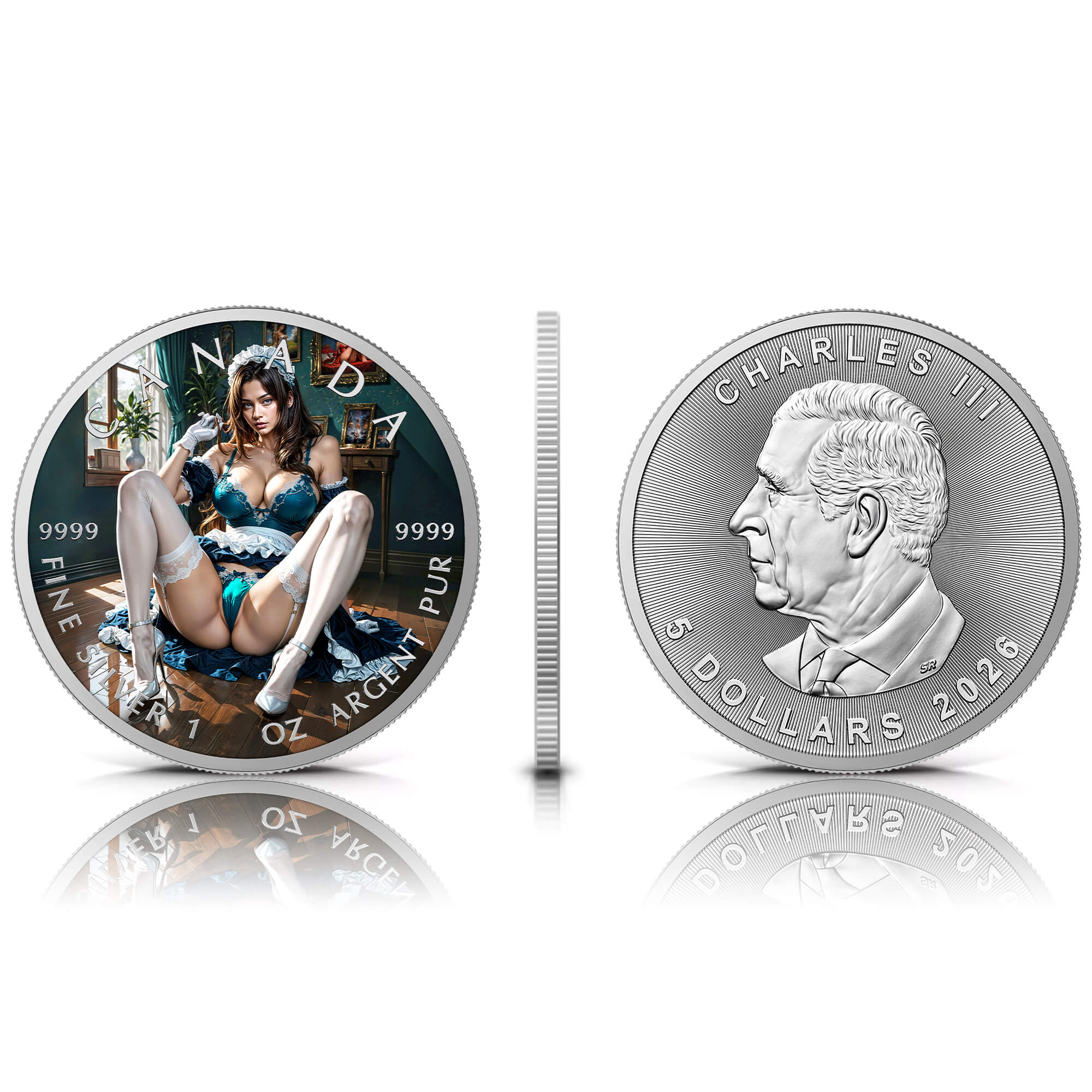 Silbermünze Canada 1 oz – Maid Temptation – 2026 Farbe Aufsteller CoA 999.9